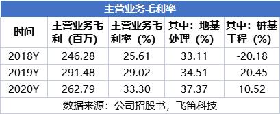 分业务看,报告期内,公司地基处理业务毛利率分别为33.11%、34.51%和 37.37%,整体稳定上升。2020年,公司地基处理业务毛利率小幅上升主要是公司境内外项目构成比例变动和境内地基处理业务毛利率上升所致。
