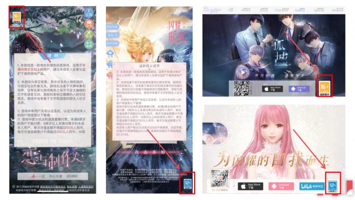 叠纸旗下游戏界面及官方网站的适龄提示具体位置。图源:叠纸公司。