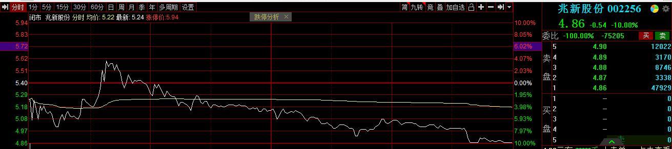 追高买了兆新股份(002256)的股民现在心里不是滋味。昨日,该公司尾盘跳水,最后一分钟涨停板被砸开,收涨6.09%。今天,其股价尾盘跌停,收盘价为4.86元,市值为91.49亿元。