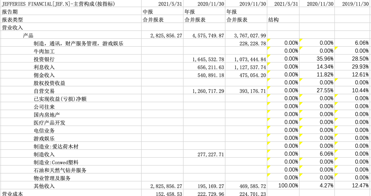 表 JEFFERIES FINANCIAL营业收入结构