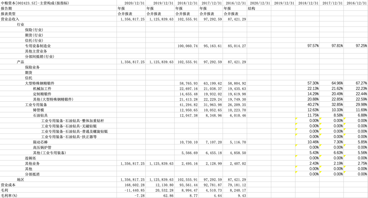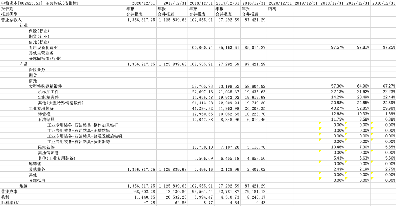 表 以中粮资本为例分析主营结构