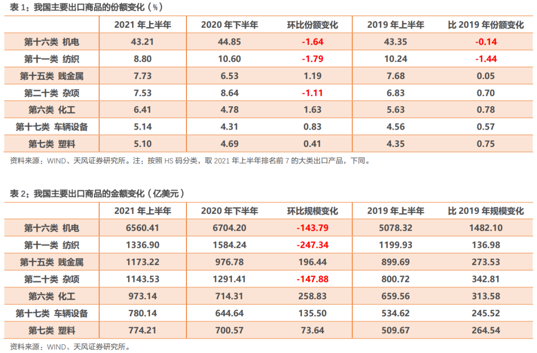 那么,上半年出口好在哪?我们分别从分产品、分区域的角度着手分析。