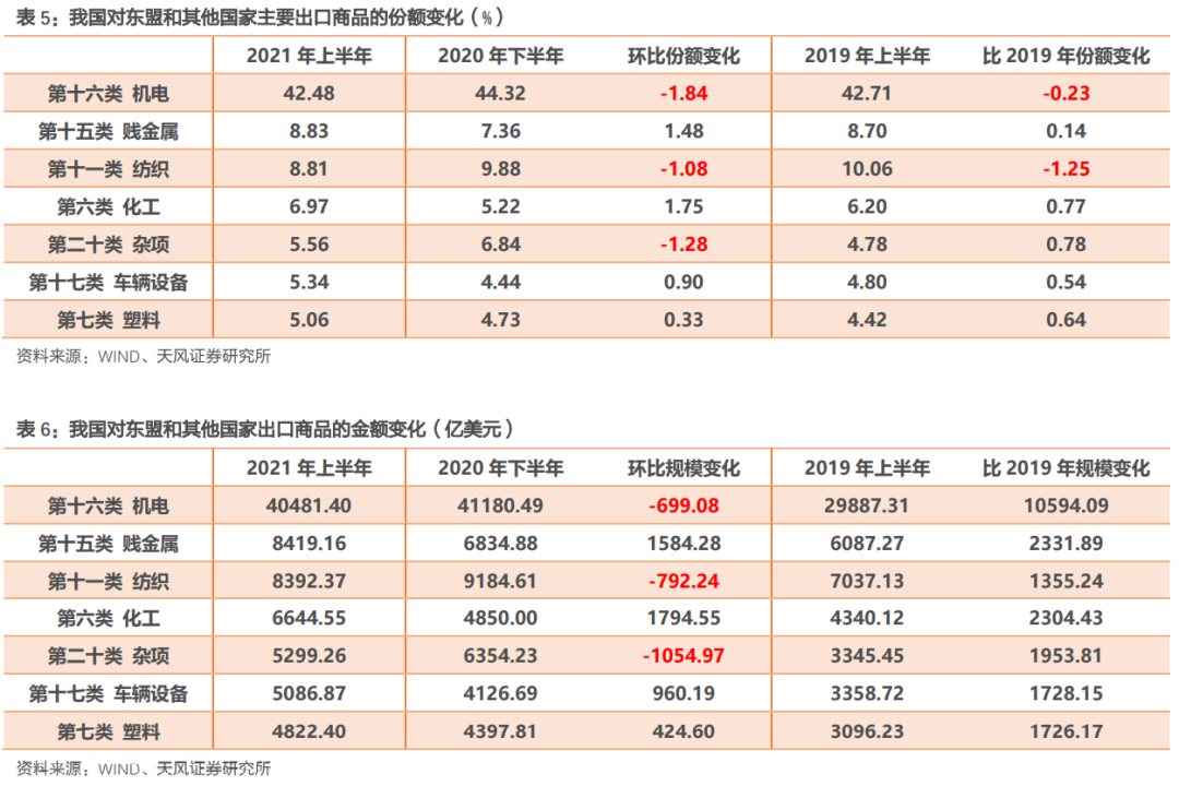 首先,结合我国上半年对东盟和其他国家出口的结构变化观察,上半年我国对东盟和其他国家的出口为什么好?