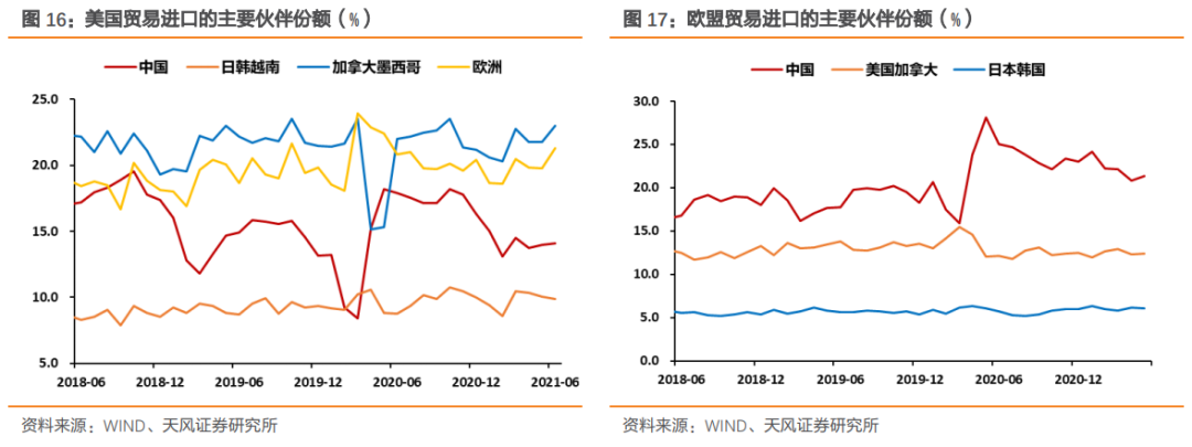 第二,好在东盟和其他国家生产活动的恢复,出口份额逐步回升,因此提升了对我国的原材料和中间品的进口需求,在欧美进口贸易中的比重也在不断提升。