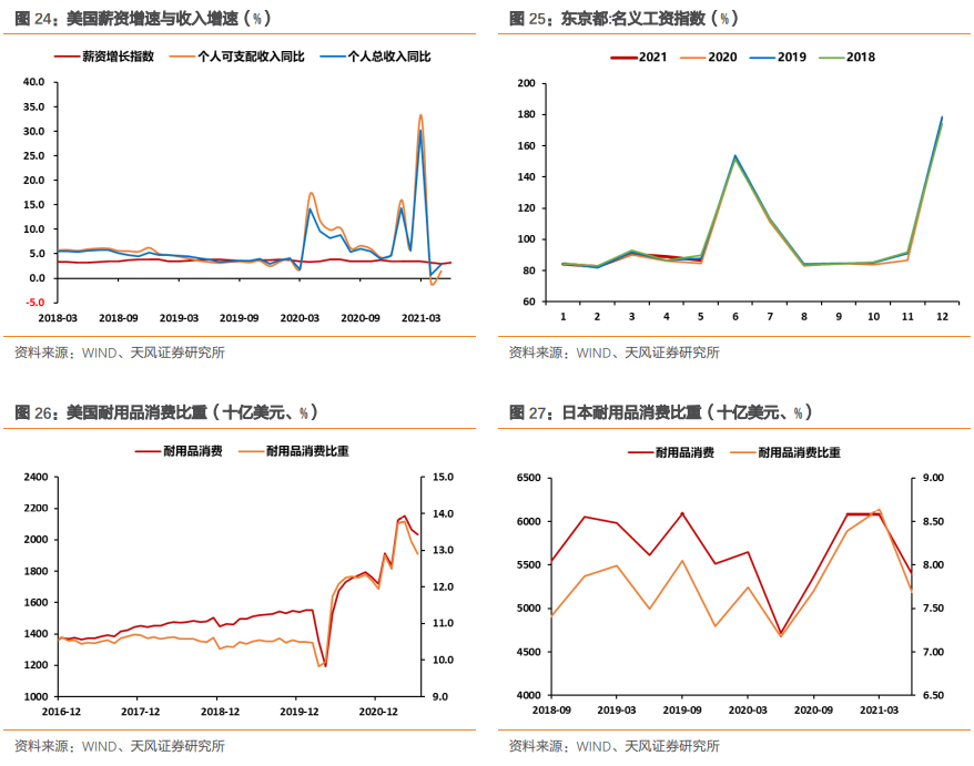 日本方面,居民收入主要还是取决于薪酬收入,疫情后日本整体的薪酬收入没有出现太多波澜。