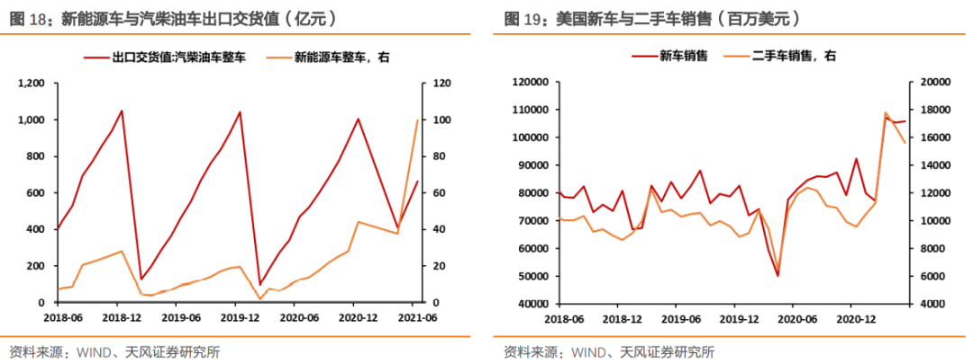 鉴于海外车企仍将持续收到缺芯影响,新能源政策也还在推进当中,预计我国下半年汽车出口仍有上行空间。