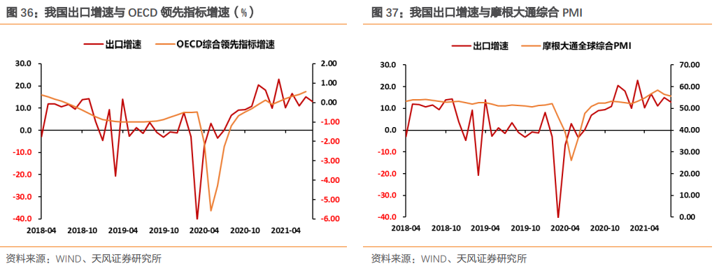 整体而言,后续全球制造业的扩张可能不再是全面性的。在此情况下,后续我国原材料和中间品的出口可能已经接近拐点,扩张空间有限,但应该也不至于明显回落。