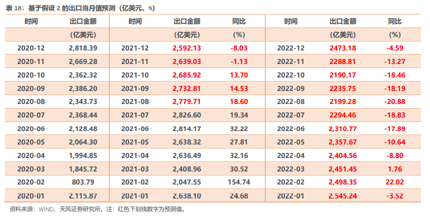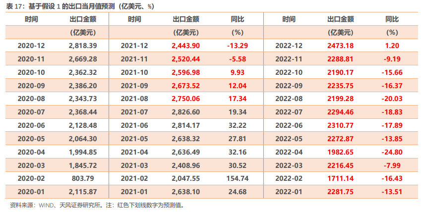 假设2:我国出口当月值在明年二季度末完全回到正常水平。在此基础上,我们取8月出口至明年6月出口当月值等差回落。