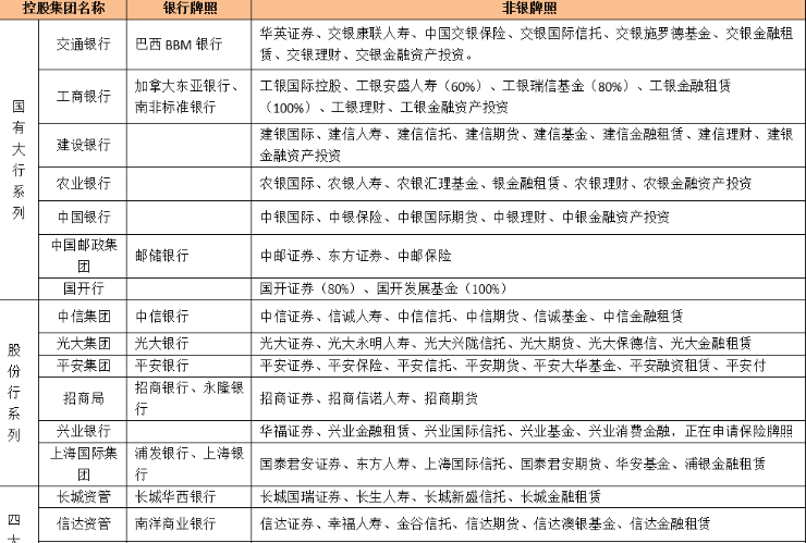 图 我国77家金融控股公司银行系/非银行系牌照梳理