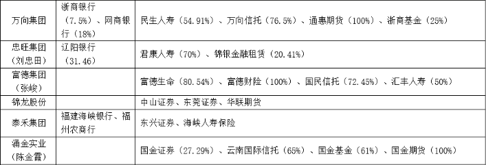 请注意这里没有将理财子公司、金融资产投资公司、基金子公司等金融机构纳入,主要是因为这些金融机构的股东大多被政策限定(如基金子公司100%被基金控股等)。