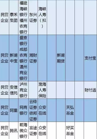 图 我国民营金融控股公司各行业牌照牌照梳理