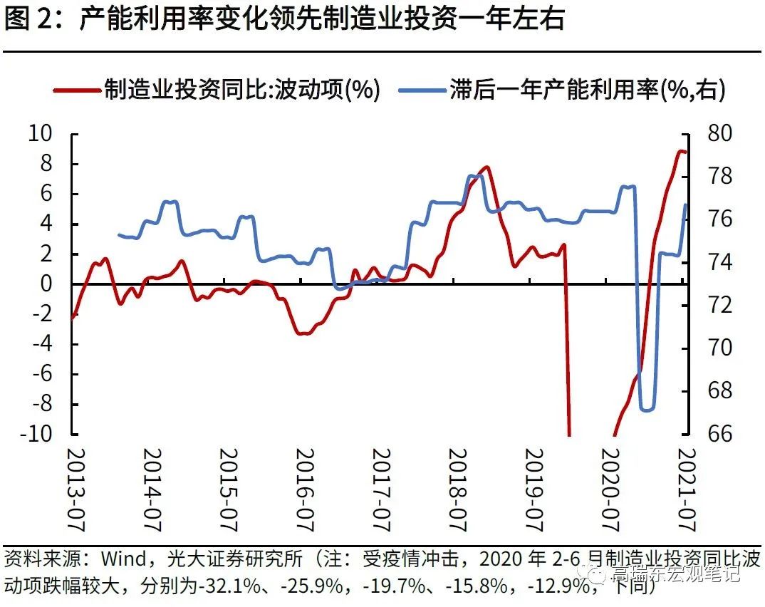 产能利用率变化领先制造业投资一年左右。产能利用率是产能周期开启的领先指标,从历史走势来看,产能利用率变化,往往领先于制造业投资增速变化,可以作为企业产能投资周期开启的重要信号。