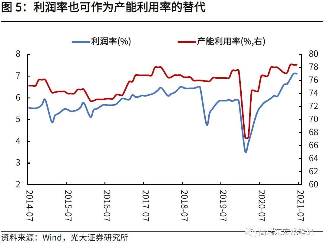 PMI新订单均值实质上反映了当前需求的情况,而企业的产能利用决策与需求变动密切相关,当需求大幅改善时,企业也会开足马力进行生产。从企业利润率的变化也可以捕捉到产能利用率的变化,当利润率处于低位时,通常对应着外部需求减弱,此时企业会减产;而当企业利润率回升时,此时外部需求也通常回暖,因而利润率可以反映产能利用率的变化。