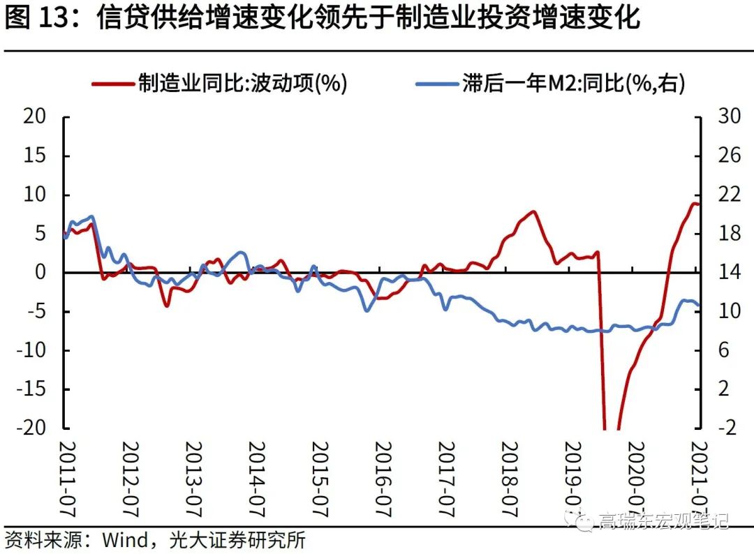 企业信贷增速也是制造业投资的领先指标。信贷是企业开展生产的必要先决条件,无论是增产还是投资,信贷资金对于企业都不可缺少,因而观测企业融资需求的变化可以较早捕捉企业未来的投资意愿。从历史趋势看,企业信贷供给变化大约领先制造业投资12个月以上。