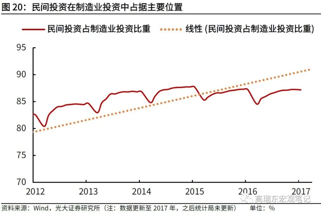 民间投资占据制造业投资的重要位置。制造业投资是所有国民经济行业中,民间投资占比最高的行业,是实体经济的重要组成部分。制造业投资超高的市场化程度,使得制造业投资与经济基本面变化紧密关联。因而制造业投资的分析中,私营企业的分析尤为重要。