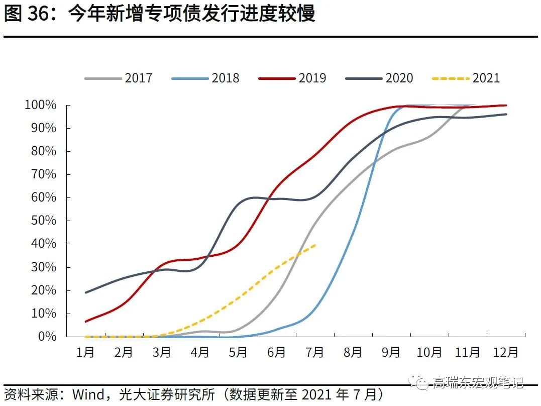7月政治局会议释放出财政更加积极发力的信号。7月政治局会议对经济恢复节奏的态度趋于谨慎,未提4月份政治局会议的“用好稳增长压力较小的窗口期”,强调经济恢复仍然不稳固、不均衡,说明目前经济恢复进程阻力仍在,政策总基调依然要“稳中求进”;同时会议提出,“统筹做好今明两年宏观政策衔接,合理把握预算内投资和地方政府债券发行进度,推动今年底明年初形成实物工作量”。因而,后置的财政发力有望持续至明年,平滑经济波动,发挥稳增长效力。