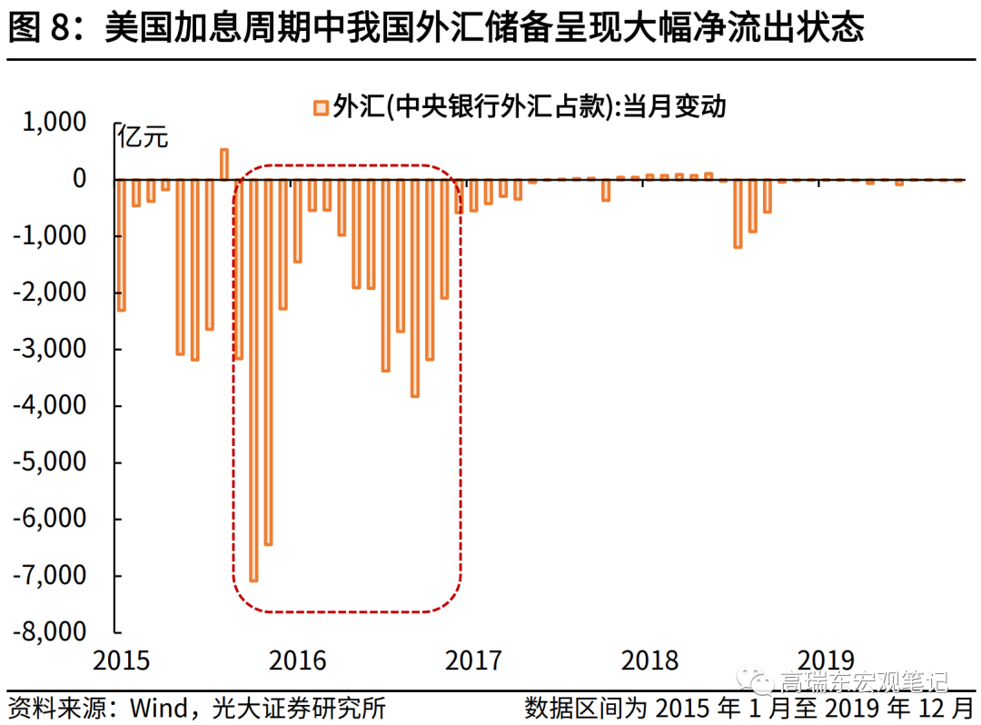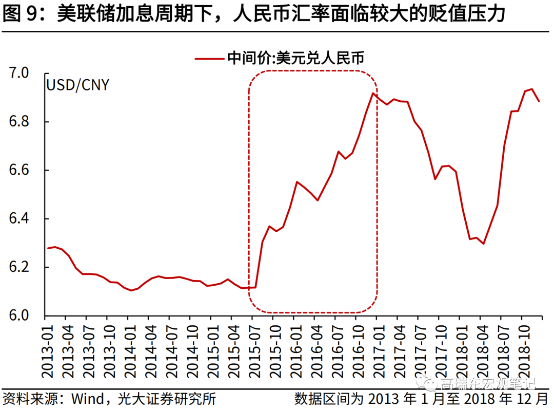 二是,中美利差的收缩将加大资本外流及人民币贬值的压力,留给我国央行为兼顾内外平衡预留政策空间的窗口期正在收缩。回溯来看,2015年12月美联储开启加息周期之后,由于美元升值及中美利差回落等因素,人民银行外汇占款持续大幅净流出,人民币汇率出现较大贬值压力。即便中美均处于紧缩周期,但由于人民银行的紧缩程度弱于美联储,资本外流及汇率贬值的压力仍然难以避免,若当时中美处于不同的政策周期,资本外流及汇率贬值的压力无疑会更大。