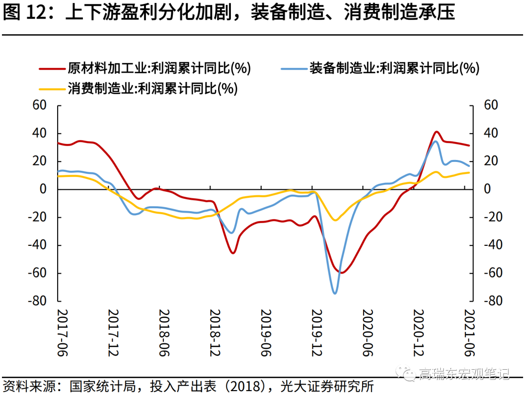 向前看,上下游通胀剪刀差、出口增速回落和疫情反复,均会持续拖累制造业复苏的步伐。首先,受全球需求恢复、主要原材料国供给偏紧、全球航运运力紧张等因素的影响,国际大宗商品价格会持续高位运行,压制制造业中下游企业盈利恢复。其次,海外供应链持续恢复,供需缺口逐步弥合,出口增速进入下行区间,也会影响制造业厂商设备扩张信心。第三,变异毒株持续来袭,全球疫情走势尚不明朗,“德尔塔”病毒引发多国疫情反复,“拉姆达”变异株席卷南美,会持续影响企业的投资信心。(详见8月9日的报告《上游涨价分化,通胀剪刀差高位运行》)