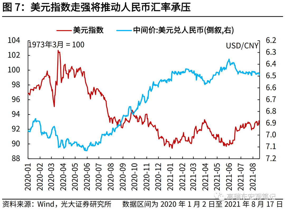 第二,美国财政刺激法案有望加快落地,通胀维持高位及经济预期改善的背景下,预计美联储缩减QE的步伐将有所加快,留给我国央行为兼顾内外平衡创造政策空间的窗口期正在收缩。