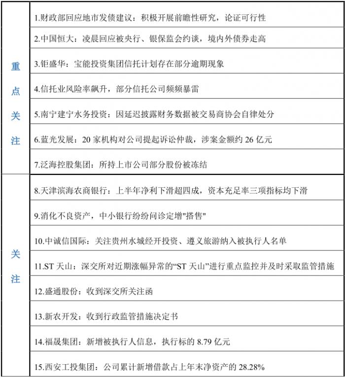 10.中诚信国际:关注贵州水城经开投资、遵义旅游纳入被执行人名单