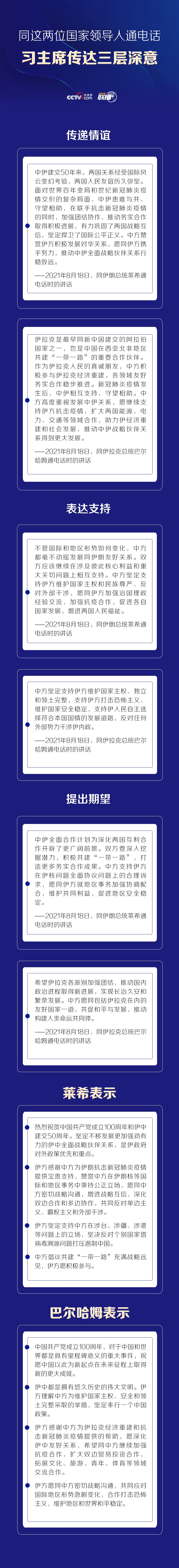 8月18日,习近平主席分别同伊朗总统莱希、伊拉克总统巴尔哈姆通电话。通话中,习主席传递情谊、表达支持、提出期望。央视网《联播+》为您梳理通话内容,与您一起学习。
