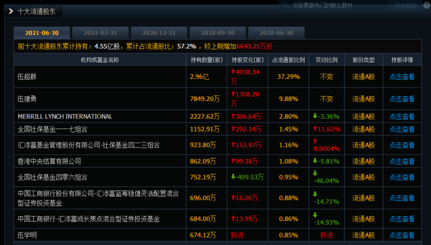 图6 2021年中报披露的十大流通股东