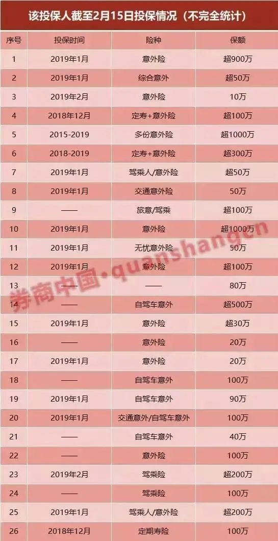 2018年,也曾有投保人在短短两个月投保了4000万元保额的意外险,保险期间三个月,被投保的保险公司当时非常紧张,但所幸后来并没有出险。
