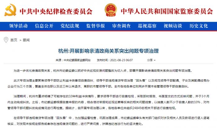 为进一步优化亲清政商关系,杭州市纪委监委以抓好中央巡视反馈问题整改为切入点,部署开展影响亲清政商关系突出问题专项治理。