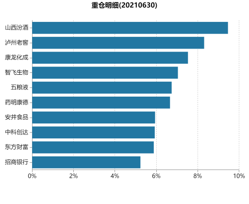 再以长信消费精选行业量化A为例,截至6月末,其重仓股票为山西汾酒、泸州老窖、康龙化成、安井食品等,如图:
