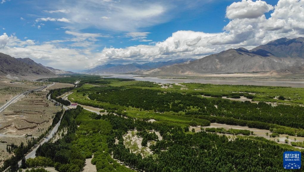 雅鲁藏布江山南段防护林(2020年6月27日摄,无人机照片)。新华社记者晋美多吉摄