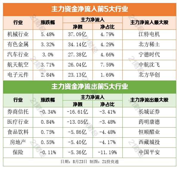 8月23日,A股三大指数走强,沪指涨1.46%,深成指涨1.98%,创业板指涨3.16%。个股全线普涨,成交量突破1.3万亿元,工业母机概念上演涨停潮。