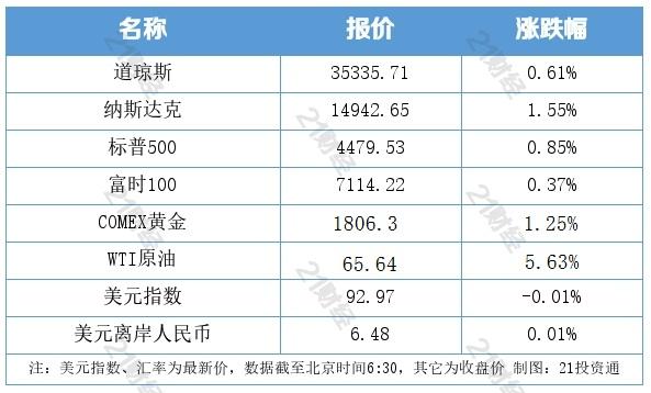 美股周一收高,纳指创盘中与收盘历史最高纪录。大型科技股悉数收涨,新能源汽车股普遍上扬,特斯拉涨3.83%,蔚来汽车涨3.39%;热门中概股集体反弹,网易涨5.44%,滴滴涨3.35%。