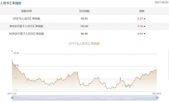 21世纪经济报道记者 叶麦穗 广州报道 中国外汇交易中心最新的人民币汇率指数显示,8月20日,CFETS人民币汇率指数报99,当周上涨0.27。这是自2016年3月中旬以来,该汇率指数首次站上99大关。人民币汇率近期一直表现强势,今日人民币兑美元中间价报6.4805元,较上一交易日(8月23日)的6.4969元上调164个基点。