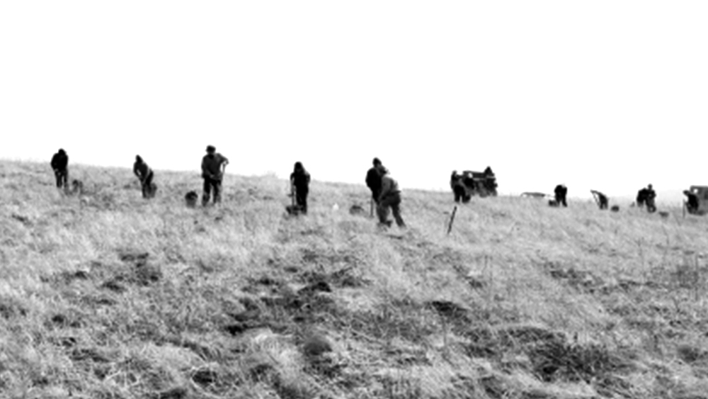 △ 塞罕坝创业初期人工造林现场。(资料图)