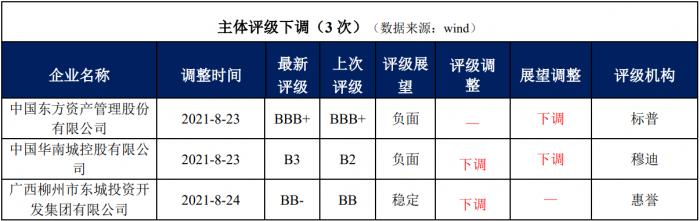 8月24日,惠誉将广西柳州市东城投资开发集团有限公司的长期外币和本币发行人违约评级由“BB”下调至“BB-”,展望“稳定”,并将东城集团的票息率7%、2022年到期的3亿美元债券的评级自'BB'下调至'BB-'。同时,惠誉已将上述评级移出评级负面观察名单。评级下调是基于,惠誉将东城集团若违约带来的融资影响自“很强”下调至“强”,原因在于惠誉认为,该公司的资本市场融资渠道畅通程度已于近年来减弱,继而令其整体政府支持因素得分下降。此外,东城集团杠杆率攀升令惠誉将该公司的独立信用状况自‘b’调整至‘b-’。