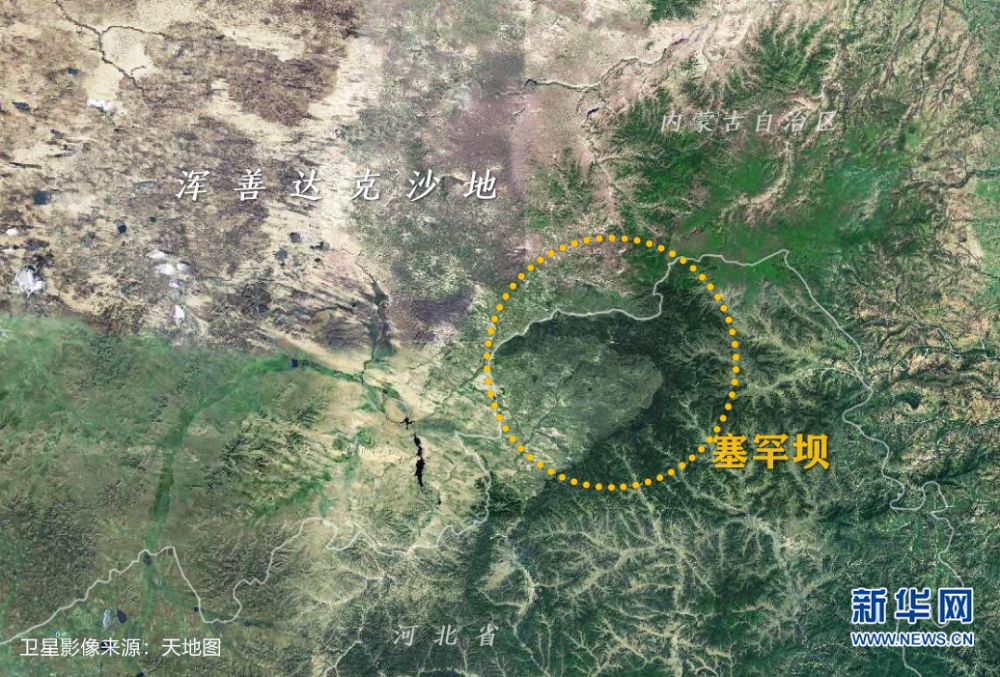 塞罕坝地理位置示意图。卫星影像来源:天地图