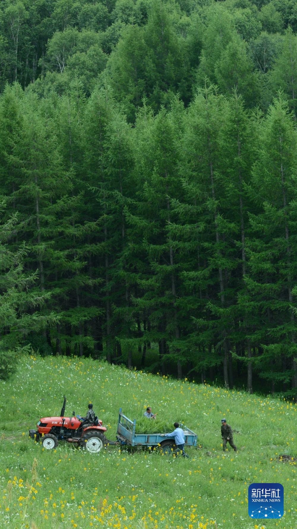 工人在河北塞罕坝机械林场千层板林场内运输苗木。新华社发