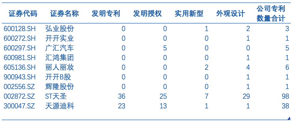 表 中国经销商行业上市公司专利情况