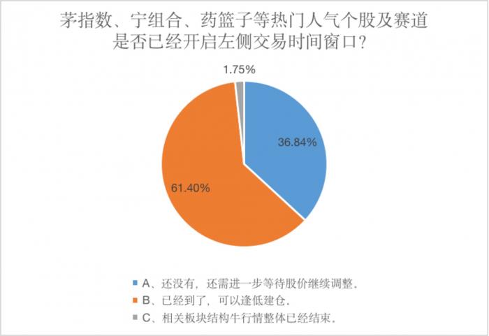 61.40%的私募认为茅指数、宁组合、药篮子这几大人气板块已经到了交易时间窗口,可以逢低建仓,