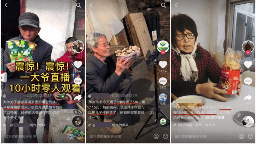 巨大的变现诱因下,苦情人设逐渐从一个人蔓延到整个团队策划,就像是专业剧组,有些团队专门到山村里寻找合适的“演员”。此前,央视就曾曝光直播卖惨带货,为了达到逼真效果,烟熏、眼药水甚至直接下手打孩子的催泪方式比比皆是。一些山村里的残疾老人是团队心目中的“最佳主角”,往往老人往镜头前一坐就能调动直播间的泪点。