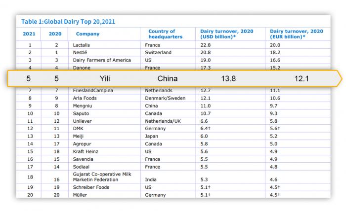 率先进入后千亿时代,伊利蝉联全球乳业五强