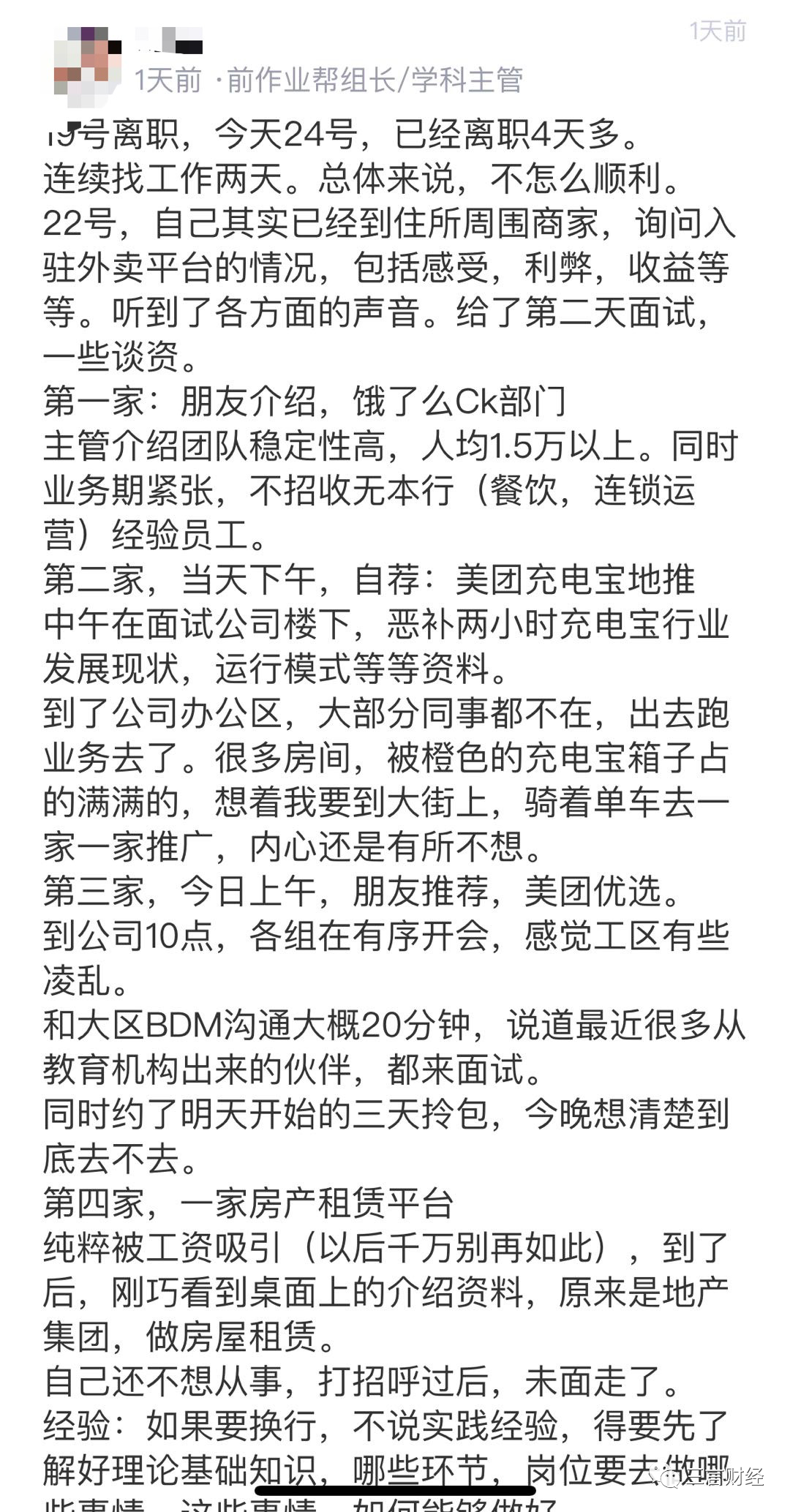 一位前某机构的学科主管分享了他连续找工作的经历。