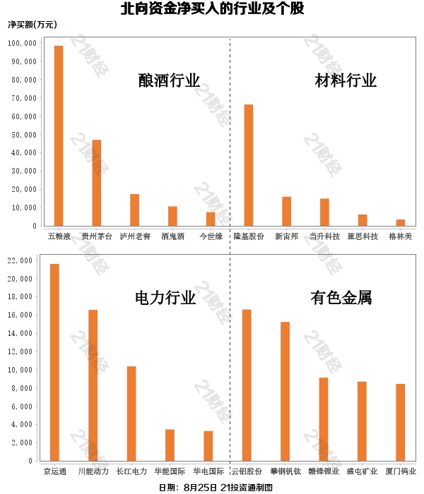 据21投资通(微信号ID:touzit21)智能监测,8月25日,北向资金净买入34.19亿元,其中沪股通净买入24.86亿元,深股通净买入9.33亿元。