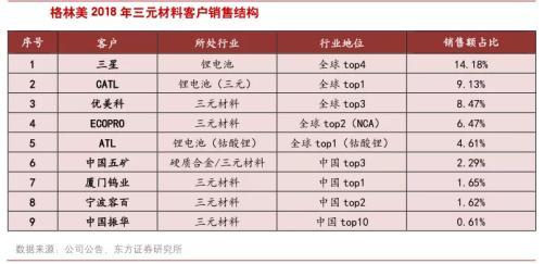 2020年2月,格林美与ECOPRO BM签订了10万吨级别8系/9系超高镍采购协议,继NCA前驱体之后,公司NCM超高镍产品正式打入海外市场。资料显示,ECOPRO是全球第二大正极材料生产商,核心客户包括三星SDI、村田和SKI等。