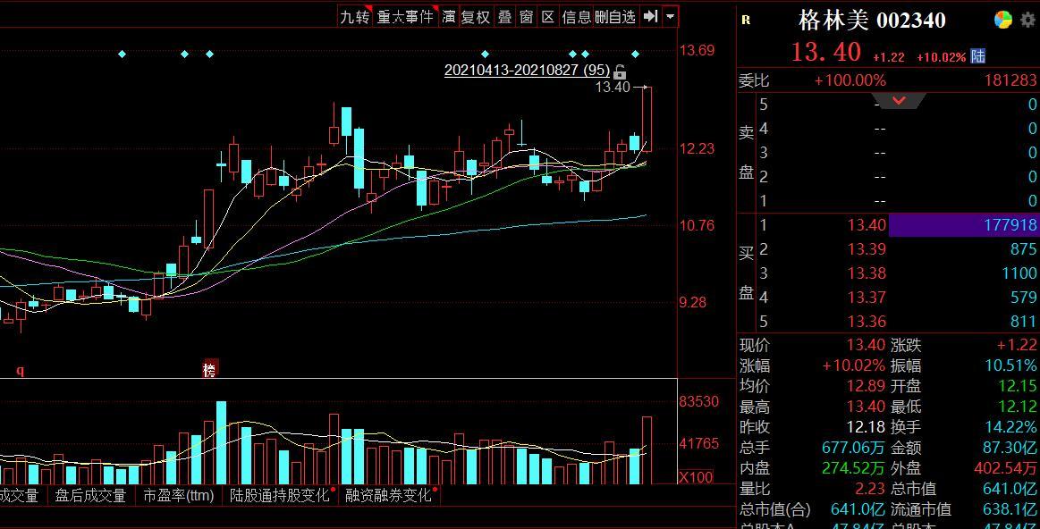 伴随着的是,全球三元前驱体龙头格林美股价大幅拉升至涨停,盘中封单一度超过40万手。与此同时,公司市值也突破新高,来到了641亿。