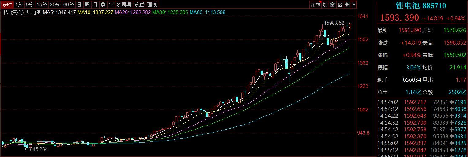 今日午后,锂电池板块持续上涨,并创下历史新高。