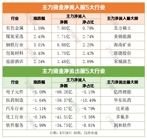 据21投资通(微信号ID:touzit21)智能监测,8月26日,北向资金净买入12.29亿元,其中沪股通净买入18.08亿元,深股通净卖出5.79亿元。增持有色金属,减持医药制造。