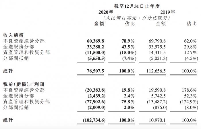 三是部分子公司风险严重侵蚀了集团经营业绩。相关金融服务附属公司资管计划底层资产风险加速暴露。资产管理和投资分部中的部分附属公司风险资产劣变。经全面审视和评估风险,此部分子公司确认了信用减值损失和公允价值变动损失。