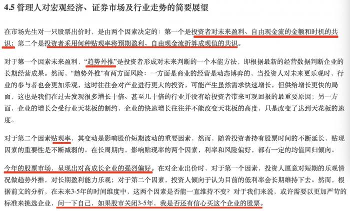 易方达基金“公募一哥”张坤在半年报中提到股票定价的两个因素: