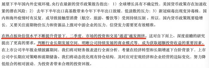 睿远基金明星基金经理傅鹏博关注央行在最新的货币政策报告,报告指出,美国货币政策存在加速收紧的潜在风险;去年下半年出口高基数带来今年下半年出口放缓,低读数的压力;新冠病毒出现变异毒株,国内和海外疫情时有反复,或导致接触型消费(航空、旅游、餐饮等)受到持续压制。
